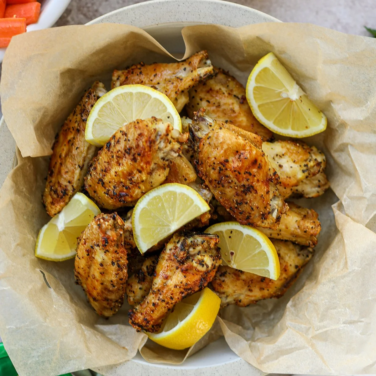 Add the drumsticks to a serving dish. Top with chopped Italian parsley and serve with lemon wedges. Add the yogurt ranch on the side for dipping.